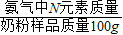 £¨2£©¸ù¾Ý¼ì²âµ°°×Öʵķ½·¨¿ÉÖª£¬ËùÎüÊÕ°±ÆøÖеÄNÔªËØÖÊÁ¿¼´ËùÈ¡100gÄÌ·ÛÑùÆ·ÖÐNÔªËØµÄÖÊÁ¿£¬ÀûÓÃÄÌ·ÛÖꬵªÔªËصÄÖÊÁ¿·ÖÊý=×100%¿ÉÍê³É¼ÆË㣻