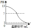 C、由于酸碱中和,所以溶液的PH随酸液的增多在不断减小,当恰好完全反应时PH═7,溶液呈中性,继续加入酸液,PH继续减小到接近1