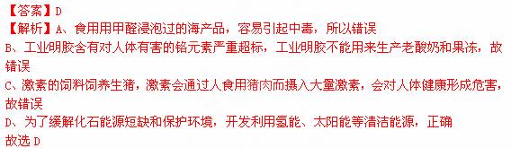 A.食用甲醛溶液浸泡的海鲜产品有利健康