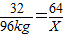 解答:解:(1)硫的质量为:4.8×103kg×2%=96kg