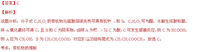 分子式C4H8O2的有机物与稀硫酸溶液共热可得有机物A和B。将A氧化最终可得C,且C和B为同系