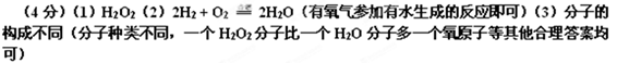 (4分) 甲、乙、丙三种物质均含地壳中含量最多的元素。甲、乙是组成元素相同的化合物,丙是单质;甲、乙在常温下均为液体,在一定条件下均可分解成丙;它们之间有如右图所示的转化关系(部分物质和反应条件已经略去)。则:甲的化学式为 ;丙转化成乙的化学方程式为 ;![]()