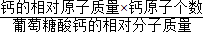 | 葡萄糖酸钙口服溶液 成分:每毫升含主要成分葡萄糖酸钙【(C6H11O7)2Ca】100mg请计算: (1)葡萄糖酸钙的相对分子质量为 (2)葡萄糖酸钙中钙元素的质量分数为 (3)生长期青少年每天钙的摄入量不得低于1200mg.某学生通过食品、乳制品等平均每日钙摄入量为828mg,若用此口服液补充钙摄入量的不足,他每天需要服用口服液 查看答案和解析>> 科目:初中化学 来源: 题型: 请计算:(计算结果精确到0.01%) (1)葡萄糖酸钙的相对分子质量为 430 430 .(2)每个葡萄糖酸钙分子中原子个数比(C:H:O:Ca)为 12:22:14:1 12:22:14:1 .(3)葡萄糖酸钙中钙元素的质量分数为 9.3% 9.3% .(4)生长期青少年每天钙的摄入量不得低于1200mg,某学生通过食品、乳制品等平均每日钙摄入量已达828mg,若再用此口服液补充钙摄入量的不足,他每天需要服用口服液 40 40 ml.查看答案和解析>> 科目:初中化学 来源: 题型:解答题