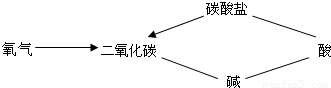 (二)A、B、C含有相同元素,不是说组成元素完全相同,那么共有元素可能为碳元素,也可能是氧元素.假如是共有元素为碳元素,在其余四类别物质(单质、酸、碱、盐)中,可以有三类物质含有碳元素(碱中不能含碳元素)则分别有C、H