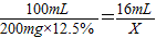 200mg÷100mL×12.5%×10%×16mL=0.4mg
