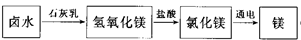 (4)ÖÆÃ¾£º¹¤ÒµÉÏÒ»°ãÓõç½âÈÛÈÚ״̬µÄÂÈ»¯Ã¾ÖƽðÊôþ£¬ÈôÒÔ±ˮ(º¬ÓÐÁòËáþ¡¢ÂÈ»¯ÄƺÍÂÈ»¯¸Æ)ΪÆðʼÔÁÏÀ´ÖÆÈ¡½ðÊôþ£¬Ç뻳öÖÆÃ¾µÄÁ÷³Ìͼ¡£