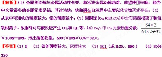 £¨1£©ÉÏÊöÈýÖÖ½ðÊôÖУ¬ÈËÀà×îÔç´ó¹æÄ£Ò±Á¶ºÍʹÓõÄÊÇÍ£¬×îÍíµÄÊÇÂÁ£¬ÔÒòÊÇ________£¨ÌîÐòºÅ£©¡£