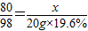(1)此时溶液呈 色。向其中慢慢滴加19.6%稀硫酸,并不断搅拌,当用去19.6%的稀硫酸20g时,溶液恰好褪成无色,此时溶液pH 7(填:“>”“=”“<”)。