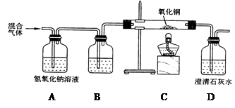 某兴趣小组为了检验在氢气和二氧化碳的混合气体中是否混有一氧化碳,用下图所示装置进行实验。试回答:![]()