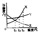 下图表示X、Y、Z三种物质的溶解度曲线,下列说法正确的是( )