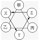 如右下图所示,现有甲、乙、丙、X、Y、Z六种物质,其中连线两端的甲、乙、丙溶液两两之间能发生反应;X、Y、Z之间只通过一步反应就能实现如箭头所指方向的转化。