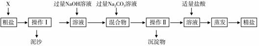 通过海水晾晒可得粗盐。粗盐除含有NaCl外,还含有MgCl2、CaCl2以及泥沙等杂质。为了有效将粗盐提纯,实验的各步操作流程如下图所示。