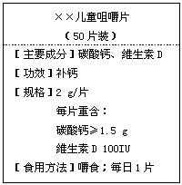 右图为××钙片商品标签图,请根据标签的有关信息完成