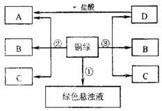 (1)实验①是向铜绿中加入适量常见无色液体B,再加热至沸,沉淀仍然不变色。实验②、③中C是一种常见的无色气体,B的化学式为 ▲ 。为满足实验③反应所需的外界条件,应该使用关键仪器名称是 ▲ 。