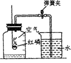 第三步:待红磷熄灭并冷却后,打开弹簧夹,发现水被吸入集气瓶中,进入集气瓶中水的体积约为集气瓶总容积的1/5。