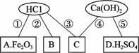 对知识的归纳和总结是学好化学的重要方法。在学习了碱的性质后,小红同学总结了氢氧化钙的四条化学性质(如图),即氢氧化钙与图中四类物质能够发生化学反应。