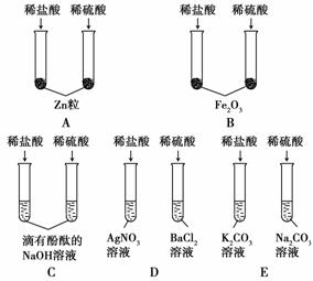 某班同学为验证酸的化学通性,做了五组实验。分析并回答问题。