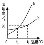 B.t2℃时,100克b物质的溶液中含有80克b物质
