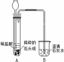 2010年全国“两会”代表和委员们首次使用环保“石头纸”制作的便笺和文件袋。“石头纸”是一种低碳经济的绿色产品,它的主要成分是一种难溶性钙盐。某化学兴趣小组的同学对“石头纸”的成分进行如右图所示的实验探究,观察到澄清石灰水变浑浊.请回答下列问题: