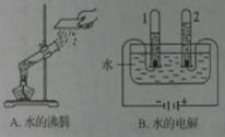 (2)右图所示的两个实验中,发生物理变化的是实验 ;实验B中没有发生改变的微粒是 ,试管2中得到的气体是 。