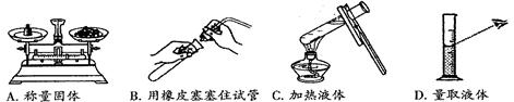 | A.点燃酒精灯 | B.滴加液体 | C.加热液体 | D.读取液体体积 |