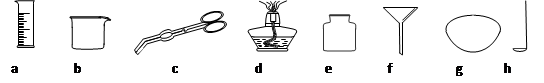 (2009·兰州)化学实验基本操作在化学学习和研究中具有重要作用。现有a试管、b漏斗、c酒精灯、d集气瓶、e药匙、f胶头滴管、g量筒(10mL,50mL,100mL)等仪器,请为下列实验操作各选一种。