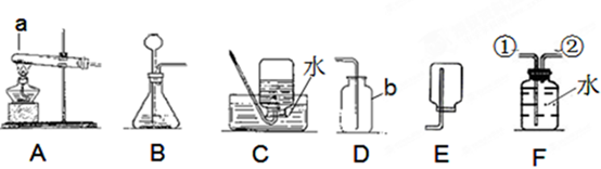 (3)实验室加热氯酸钾和二氧化锰制取氧气的化学方程式是 ,应选择的发生装置是 ,若用盛满水的F装置收集氧气,应从导管 (填①或②)通入。