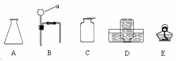 (5分)某班同学到实验室进行气体的制取实验,实验桌上摆放了下列仪器可供选用(铁架台省略)。![]()