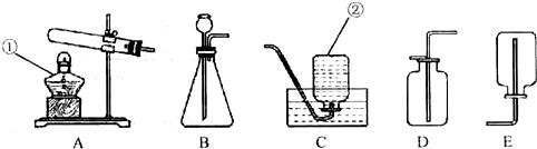 (1)写出上图所示装置中标有序号的仪器名称:① ② 。