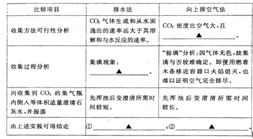 (3)排水法收集与排空气法收集CO2的比较(分别用体积相同的2个集气瓶收集)![]()
