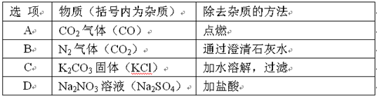 | B.用适量的K2CO2溶液除去NaCl溶液中少量的CaCl2 |