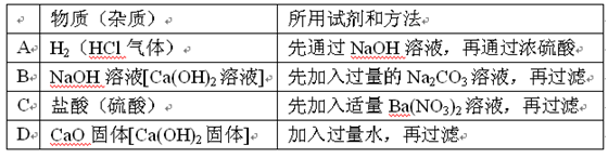 | C.Na2CO3 、BaCl2、HCl、KCl | D.Na2CO3、KNO3、NaCl、CaCl2 |