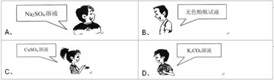 实验室有两瓶失去标签的无色溶液,一瓶是稀硫酸,另一瓶是氢氧化钠溶液.下面是四位同学提供的四种试剂,其中不能将它们鉴别出来的是( )![]()