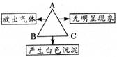 右图表示的是A、B、C三种溶液两两混合发生反应的实验现象,符合该实验现象的A、B、C三种溶液依次是( ) ![]()