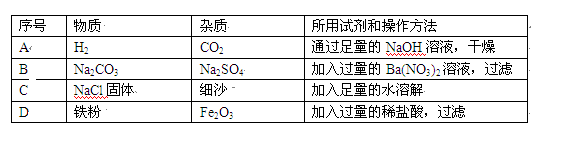 | C.用浓硫酸除去氢气中混有的水蒸气 | D.用石蕊试液鉴别澄清的石灰水和氢氧化钠溶液 |