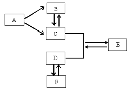 A、B、C、D、E、F都是初中化学常见的物质。它们之间的关系如下图所示(图中“—”表示两端的物质能发生化学反应;“→”表示物质间存在转化关系)。![]()