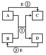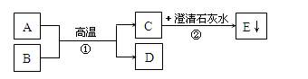 已知A、B为两种黑色粉末,D为红色单质。A、B、C、D、E五种物质之间的转化关系如下图所示。![]()