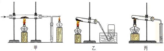 (3)在实验室里,反应①选择下图中的 (选填甲、乙、丙,下同)装置进行实验,反应②选择下图中的 实验。![]()