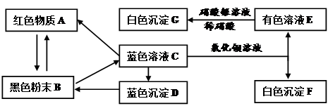 (7分)现有A、B、C、D、E、F、G七种物质,其相互转化关系如下图:![]()