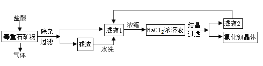 氯化钡是一种可溶性重金属盐,广泛应用于化工领域,用毒重石(主要成分为BaCO3)制备氯化钡晶体工艺流程如下:![]()