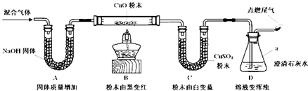 某混合气体可能含有CO、H2、CO2、H2O(气)中的一种或几种.为验证其组成.同学们进行实验的装置和现象如下(夹持仪器已省略,假设气体均吸收完全):![]()
