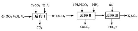 (3分)以二氧化硫尾气、石灰石、空气、碳酸氢铵、氨气和KCl等为原料可以合成有重要应用价值的硫酸钾等物质。合成流程如下图所示:![]()