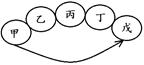 甲、乙、丙、丁、戊是初中化学常见的物质。下图中的五个圆分别表示这五种物质,用两圆相切表示这两种物质能发生反应,“→”表示物质间的转化关系(部分反应物、生成物及反应条件已略去)。![]()