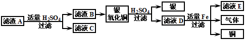 先在废液中加入过量的铁粉,充分反应后过滤得到滤渣A,其成分为银、铜和铁。再对滤渣A按如下流程图处理: