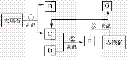 (4分)工业上以大理石和赤铁矿为主要原料制取B和G,其转化关系如下图所示,已知D、G为单质。