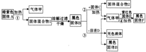 (7分)A、B、C、D、E、F都是初中化学中常见的物质。它们的转化关系是:![]()