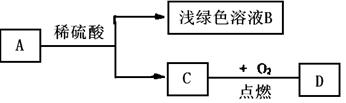 (1)写出A、C、D三种物质的化学式:A________、C_________、D_________。浅绿色溶液B中溶质的化学式_______________。