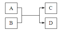 (2分)A、B、C、D都是初中化学中常见物质,它们间关系如图所示(反应条件已省略)。![]()