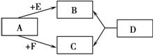 (6分)A、B、C、D、E、F六种物质都是初中化学内容中涉及的化合物,转化关系如下图所示,其中D是最常见的溶剂。![]()