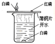 | 主要作用 | 试管中的水: 使铁生锈的物质之一 | 量筒中的水: 冷却后,打开止水夹,被抽出的水的体积约量筒中水的总体积的1/5 | 集气瓶中的水: 冷却溅落的熔融物,防止集气瓶炸裂 | 烧杯中的水: 加热铜片;隔绝空气 |